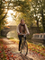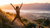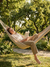 Woman sitting at a sunlit desk with eyes closed, hands on journal, taking a mindful breath surrounded by plants